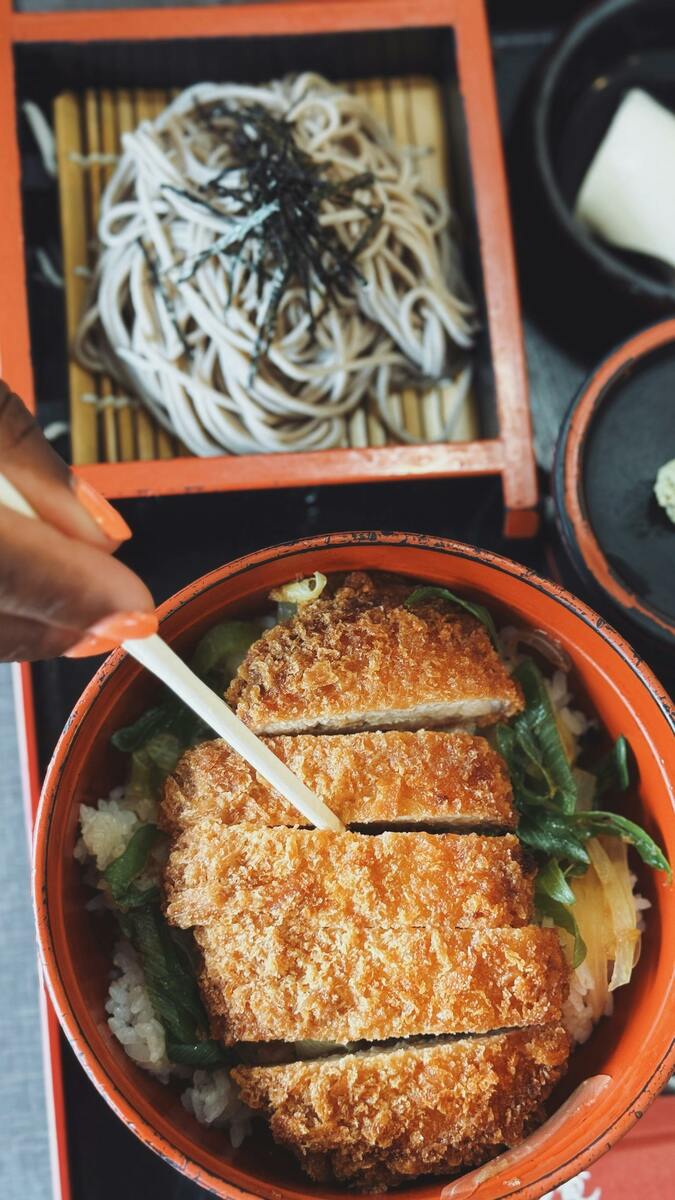 Tonkatsu y tempura: Chuletas de cerdo empanizadas y vegetales/mariscos fritos en masa ligera. Son servidos con arroz, miso y encurtidos.